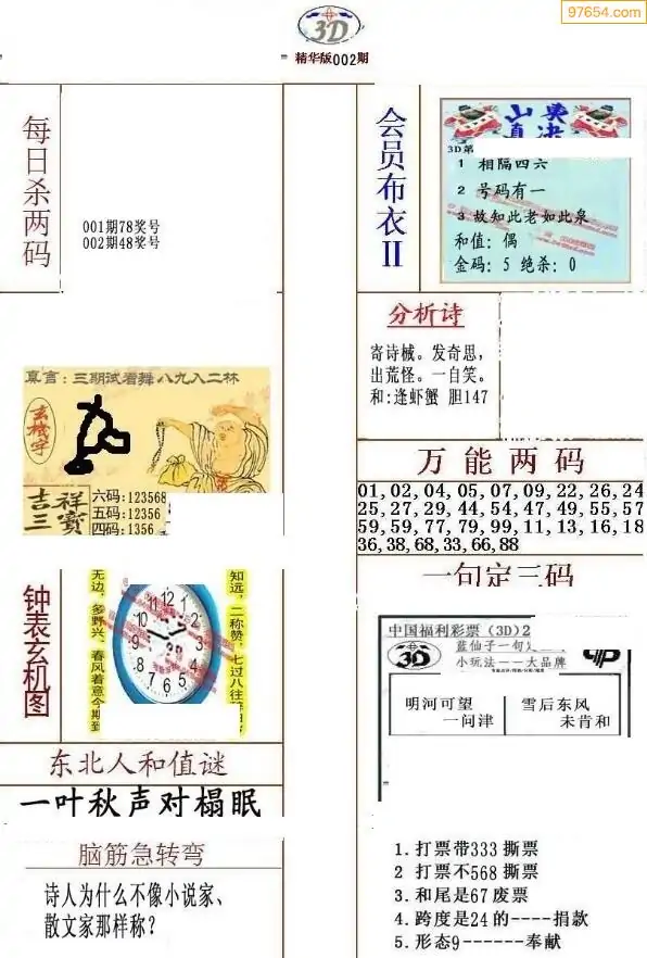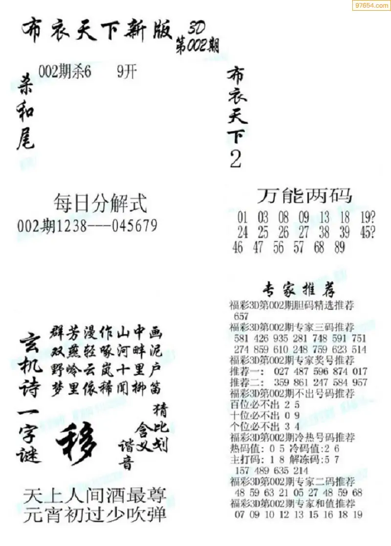 (2)26年002期本期3d图迷汇总_福彩3D图谜总汇图