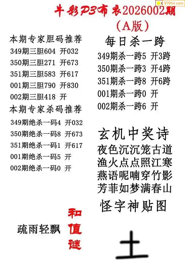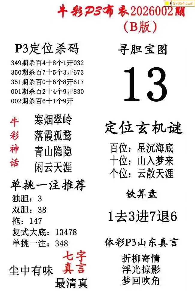 2026年002期北盟天机图+p3仙机图谜 _排三图谜专区