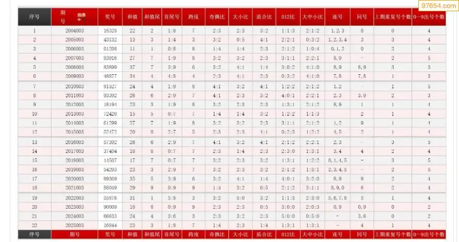 003期体彩P5历史同期对比图表+近期走势图分析