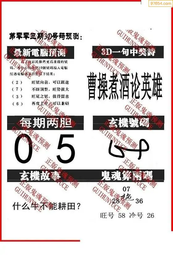 26003期鬼六神算 _鬼六神算正版原图