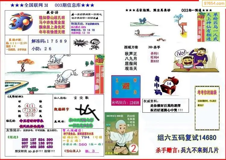 福彩3D003期天牛彩吧套图整合总汇