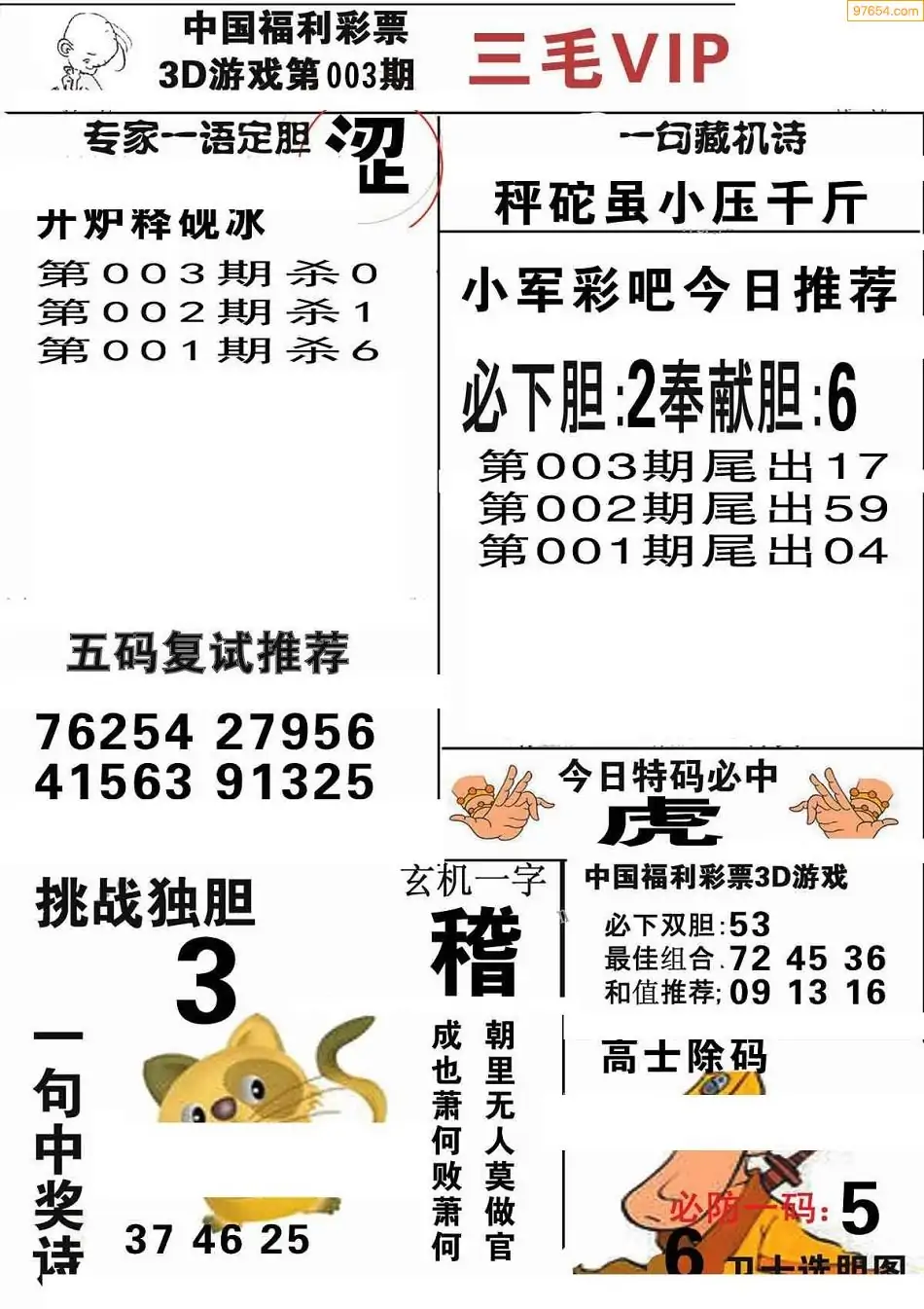 福彩3D003期天牛彩吧套图整合总汇