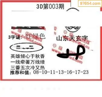 3D26年003期真5188图谜