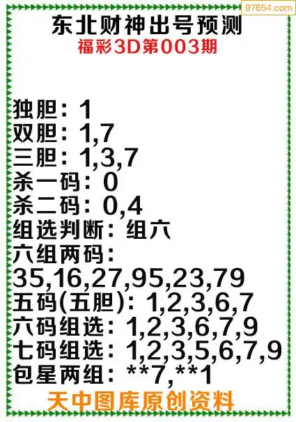 3d原创003期东北财神预测