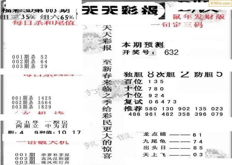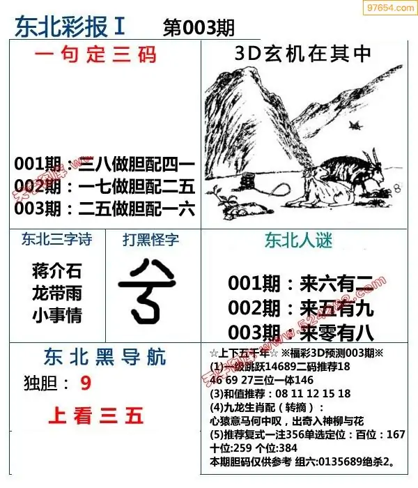 福彩3D003期天牛彩吧套图整合总汇