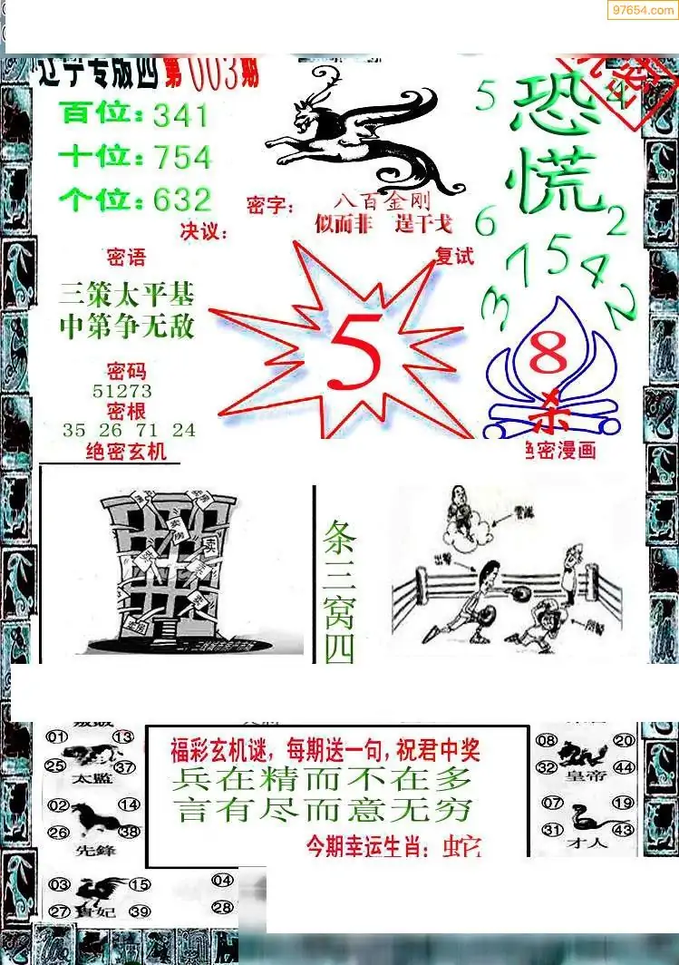 003期福彩天机壁怪字图