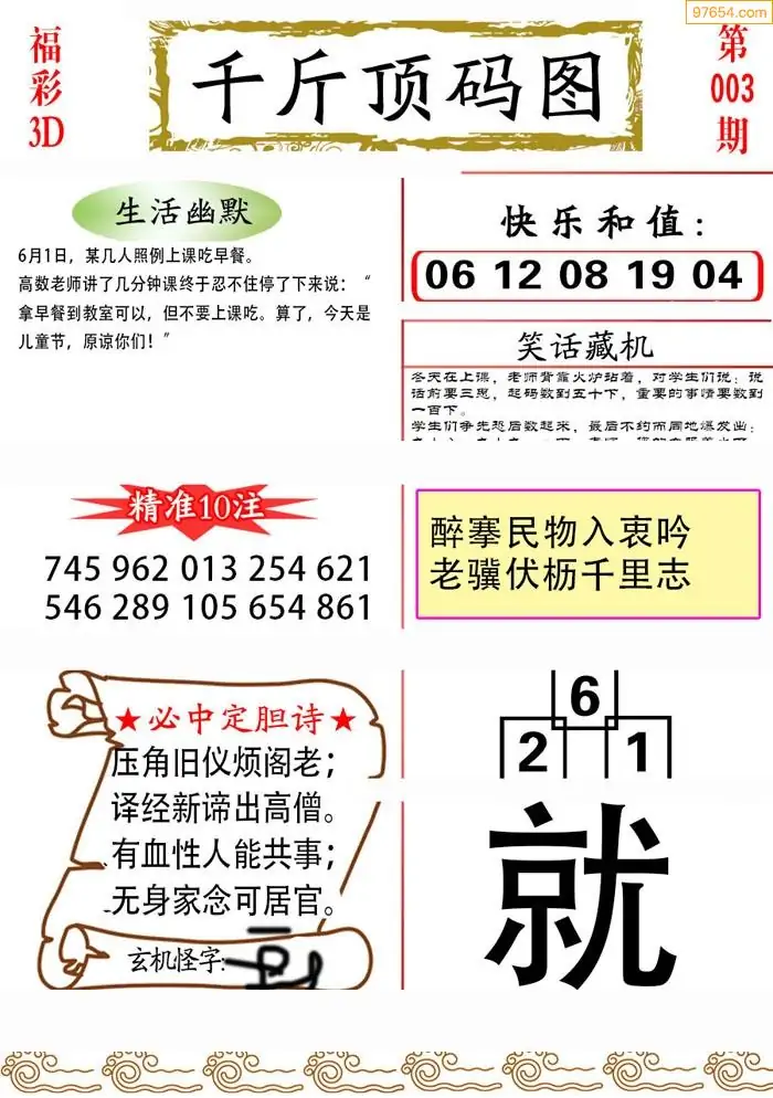 福彩3D26003期蓝仙子一句定三码图谜