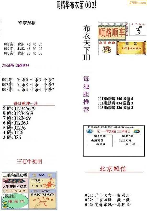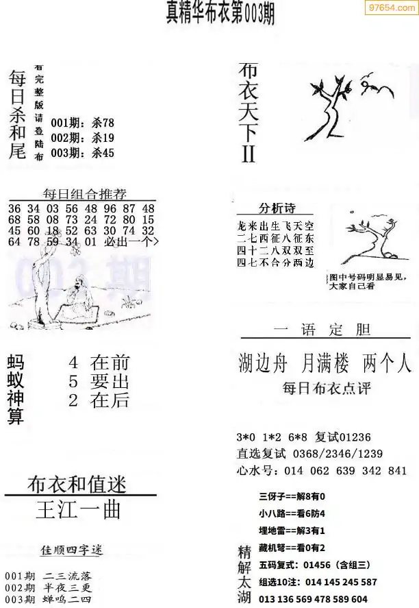 003期真精布衣3d正版布衣123456(原创)