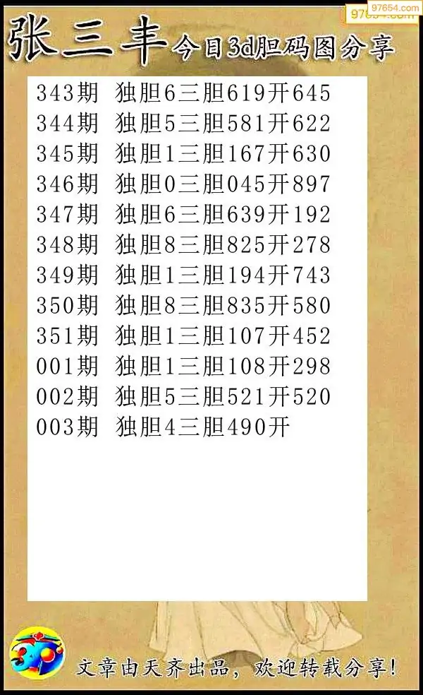 2026003期彩彩网3d原创图迷搜集(天中整理)