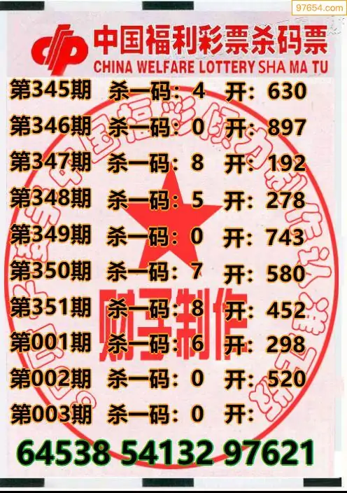 003期97654本站收集胆码出号预测