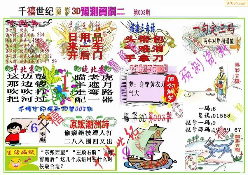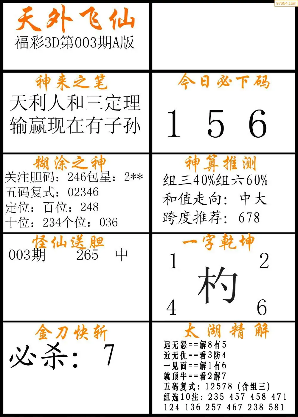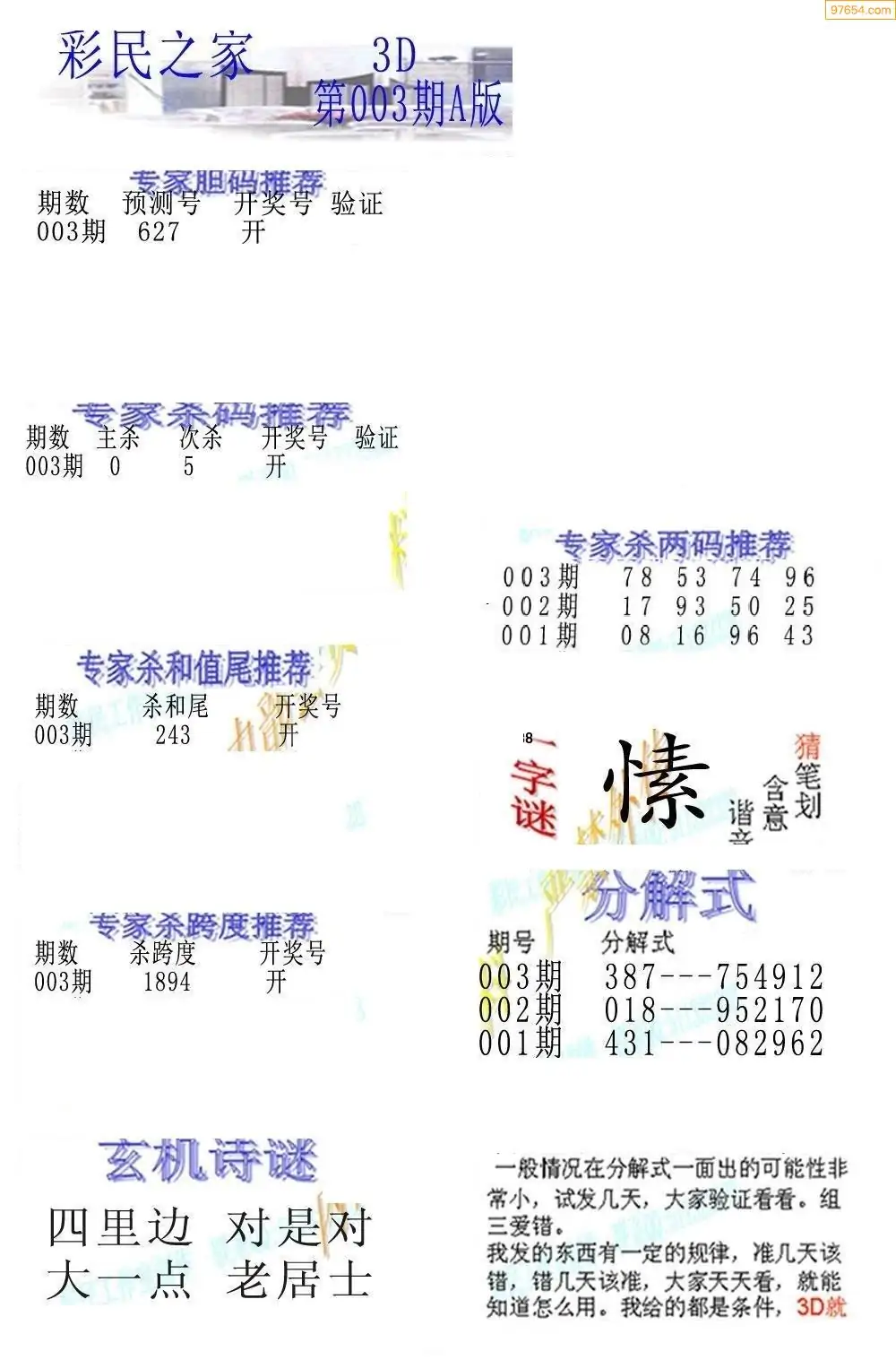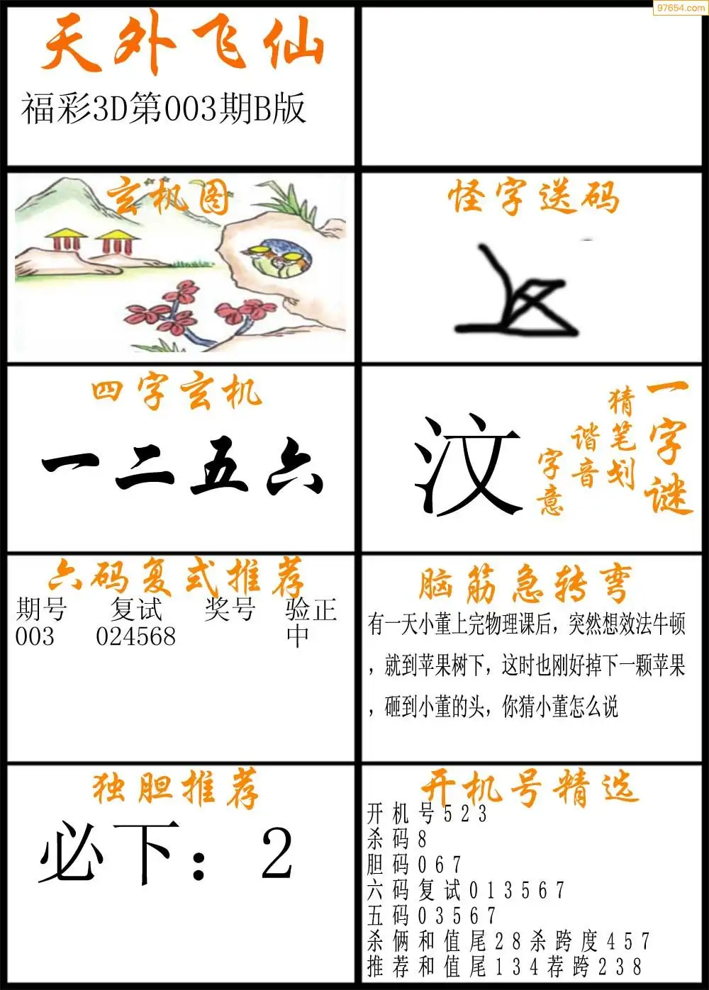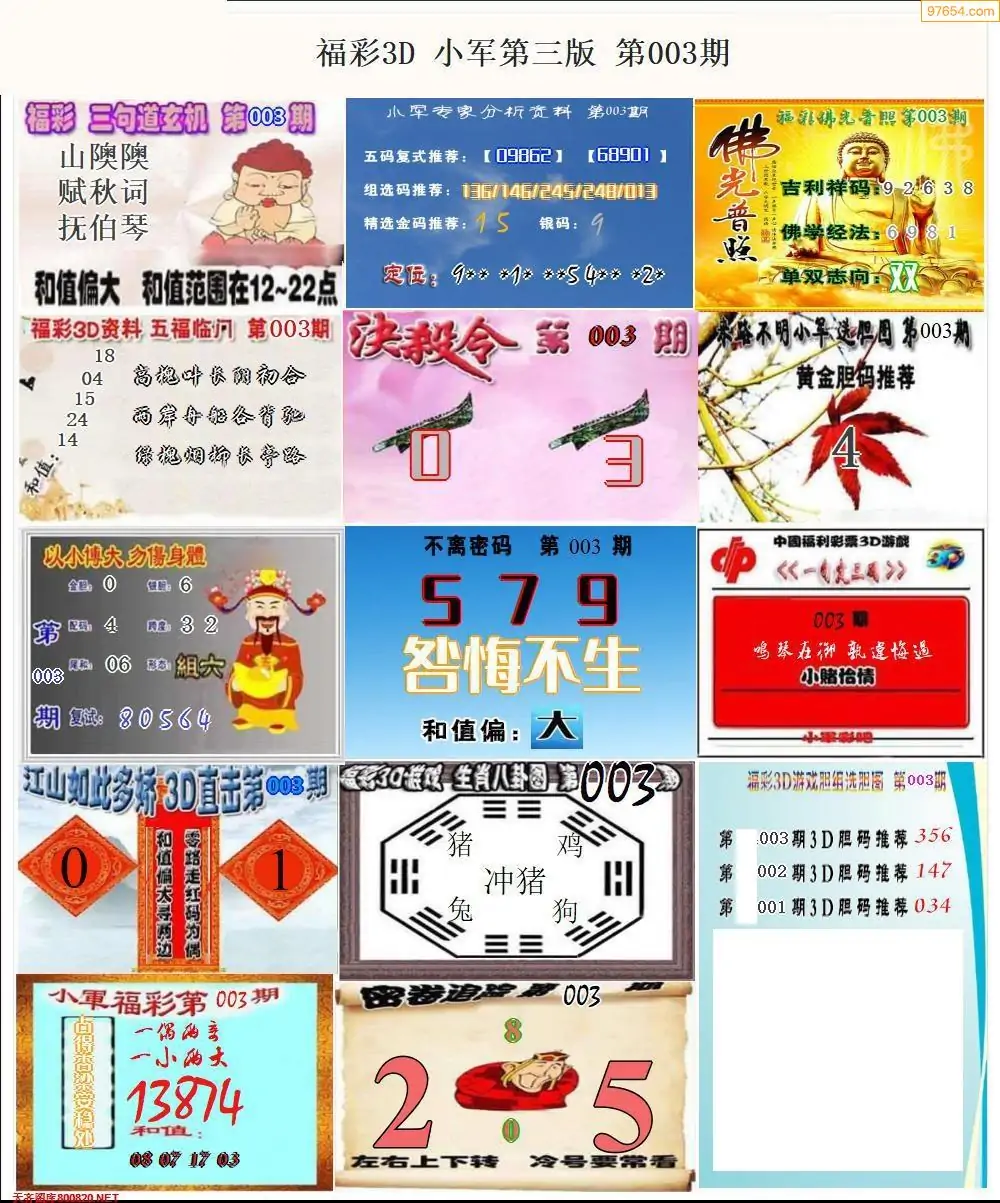 (3)2026003期3D预测总汇全图_福彩3d图谜字谜总汇