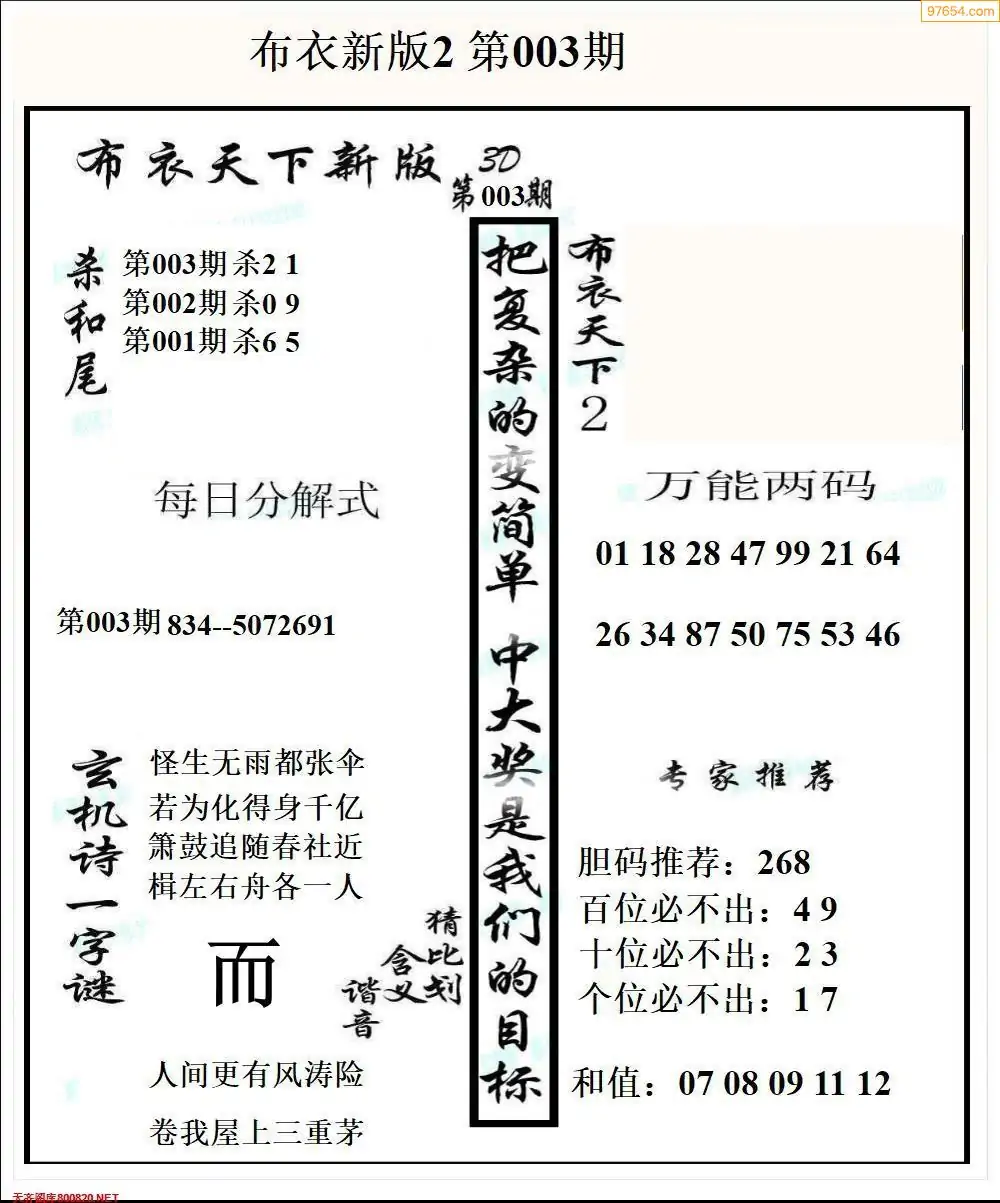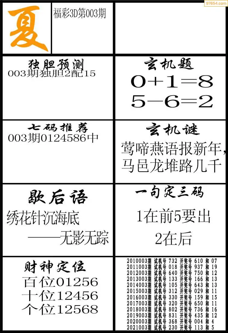 (2)26年003期本期3d图迷汇总_福彩3D图谜总汇图
