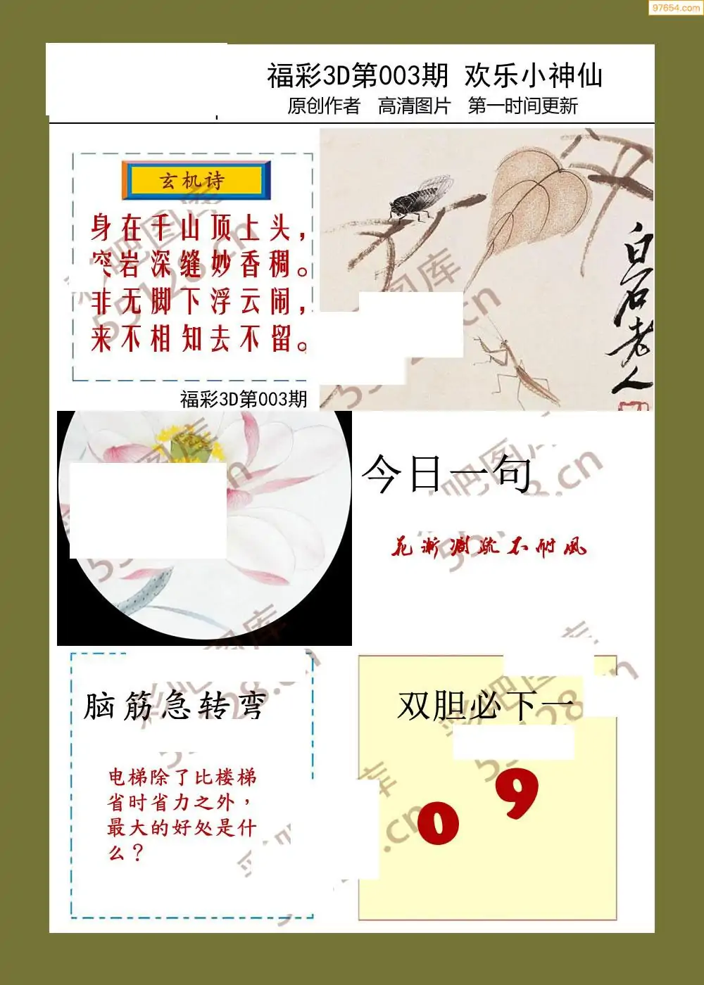 (2)26年003期本期3d图迷汇总_福彩3D图谜总汇图