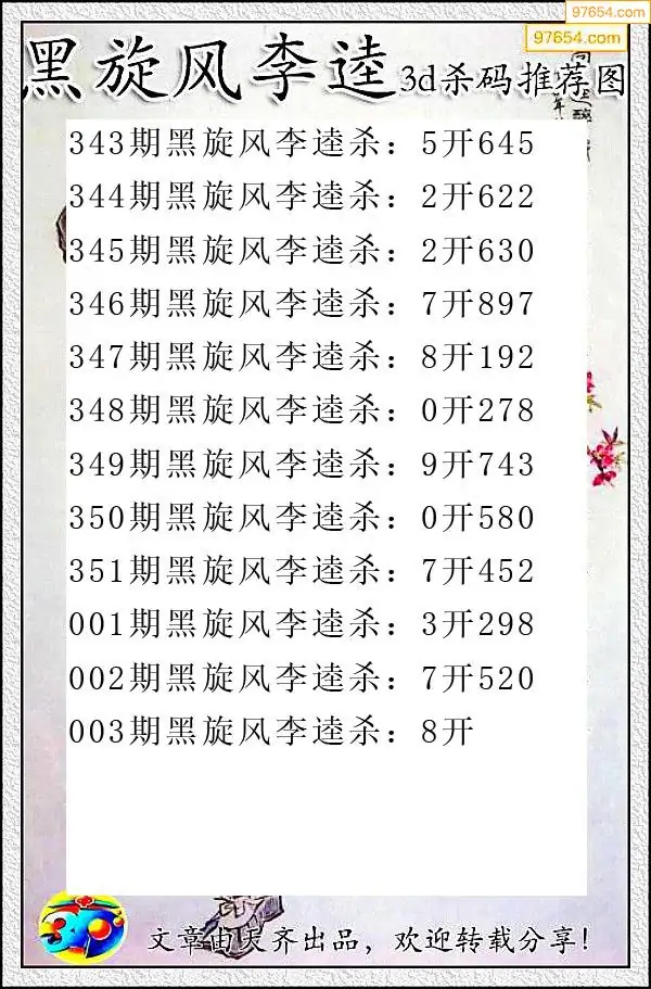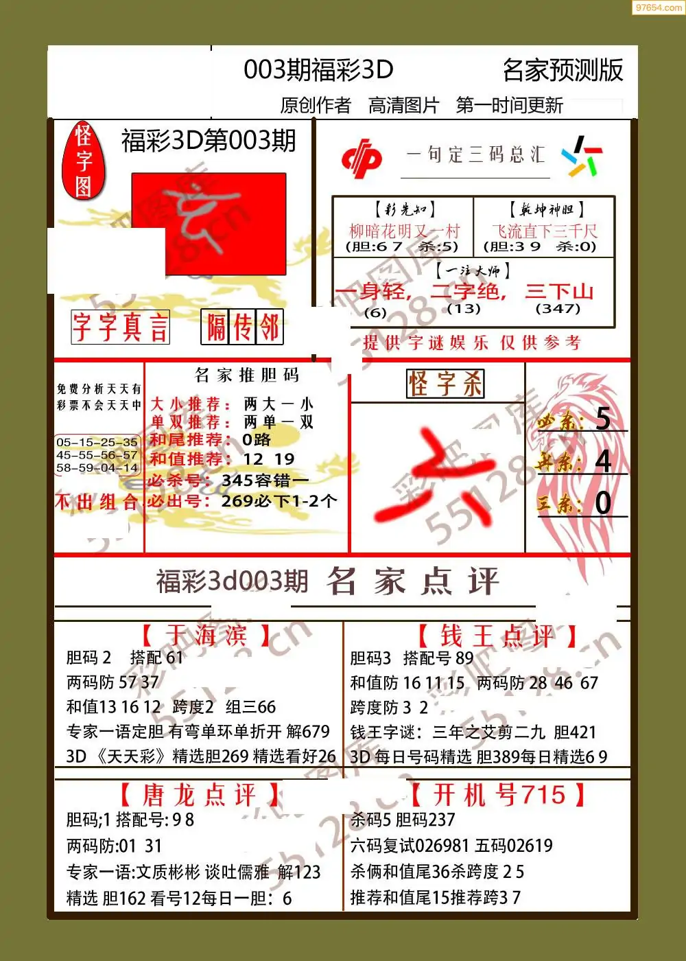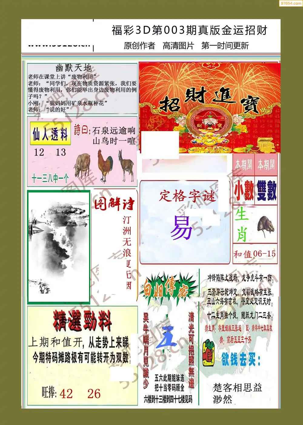 (3)2026003期3D预测总汇全图_福彩3d图谜字谜总汇