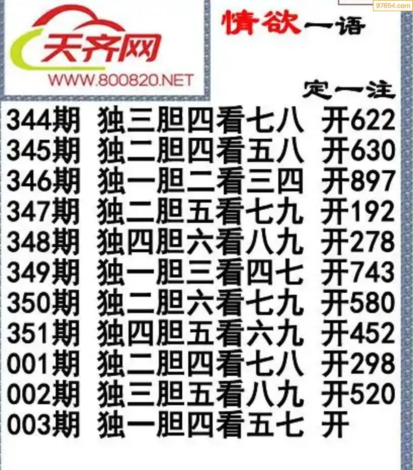 福彩3d左岸清风26年003期一语定一注