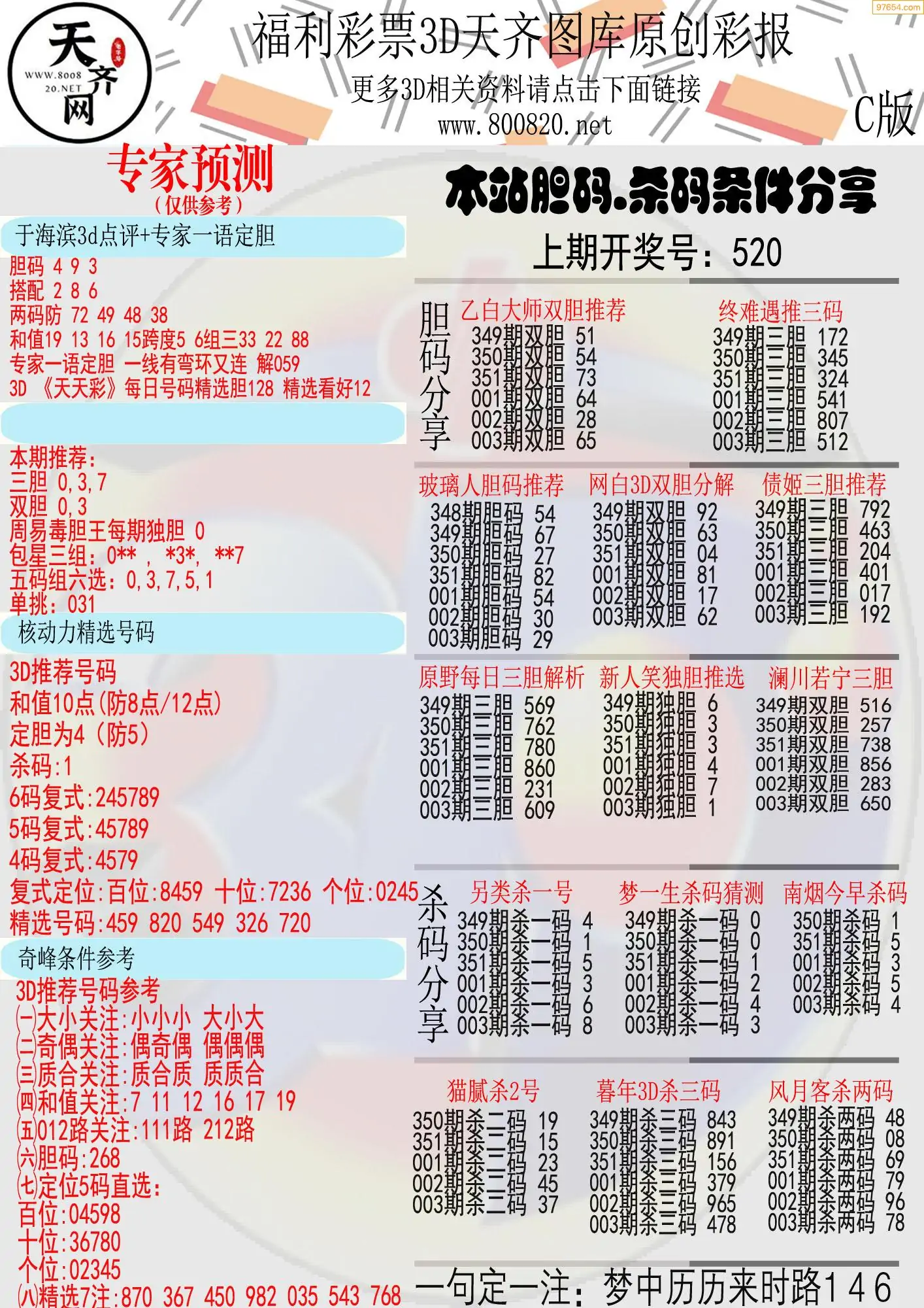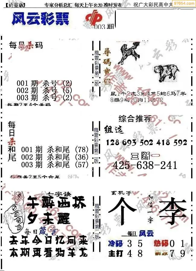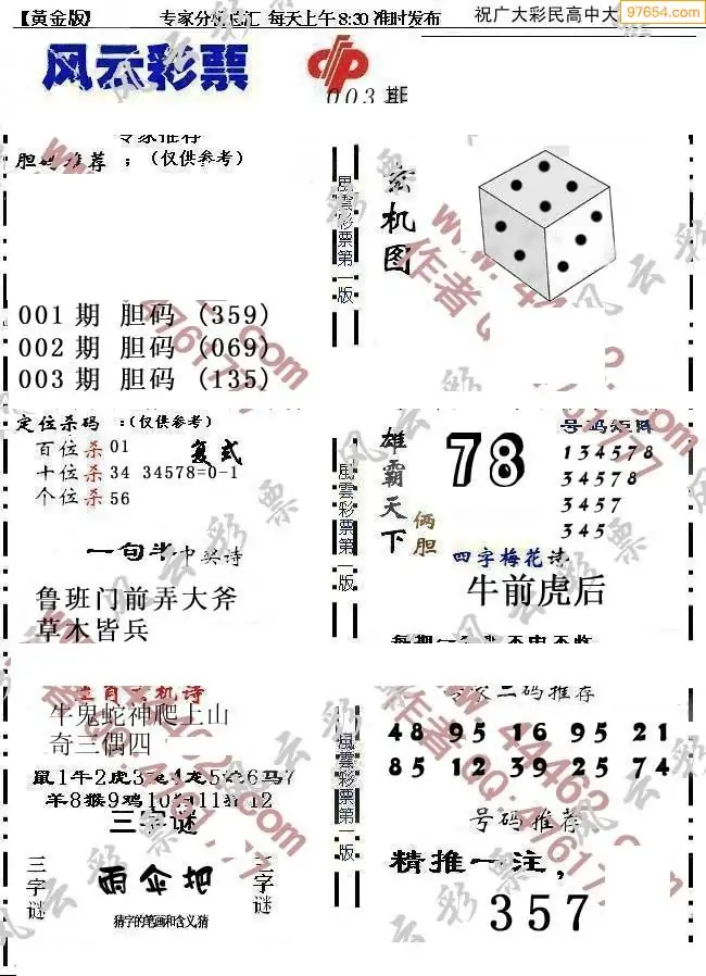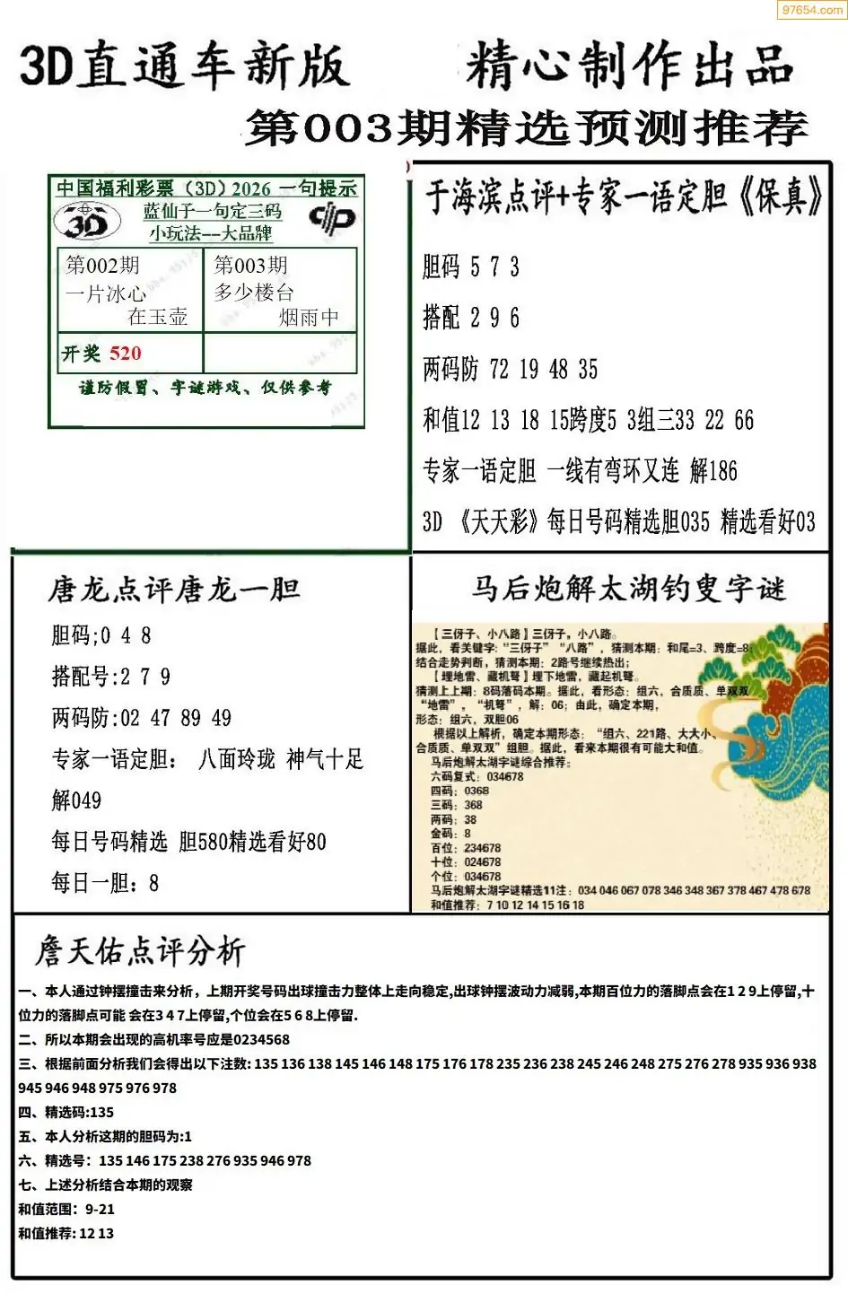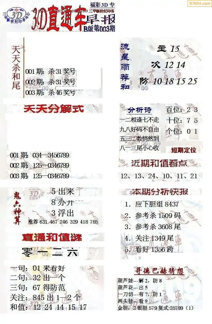 (8)26年003期今日3d各类彩报汇总