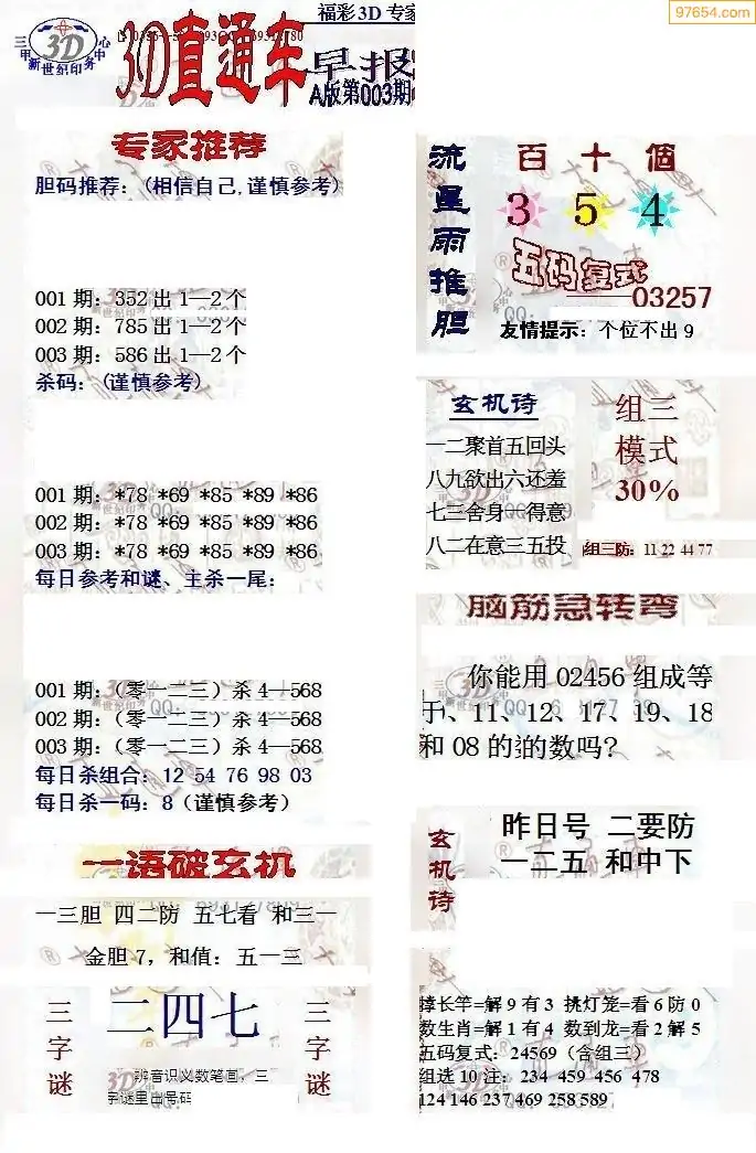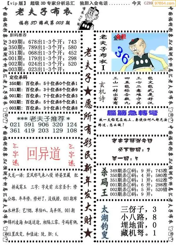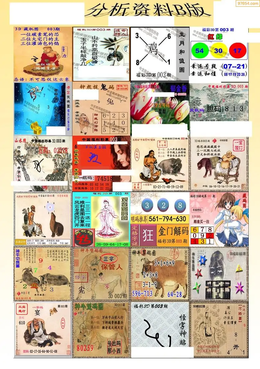 (3)2026003期3D预测总汇全图_福彩3d图谜字谜总汇
