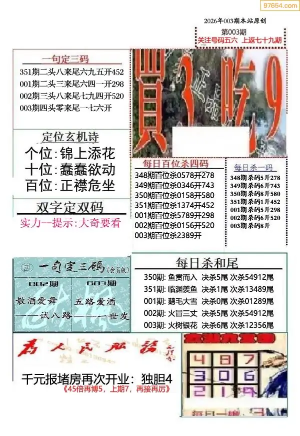(9)26年003期当期全站杀号定胆图