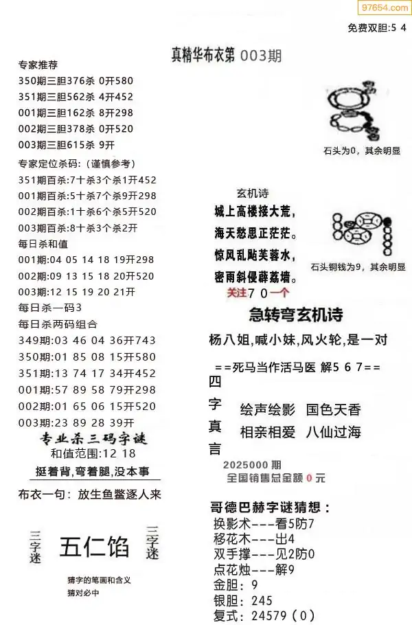 (2)26年003期本期3d图迷汇总_福彩3D图谜总汇图