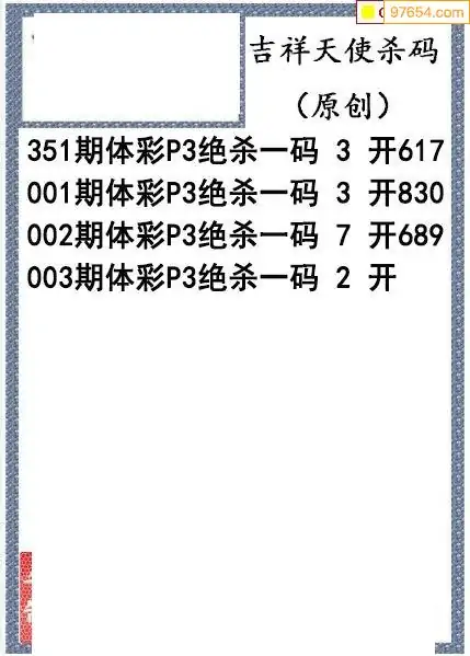 26年003期吉祥天使今日杀码图谜