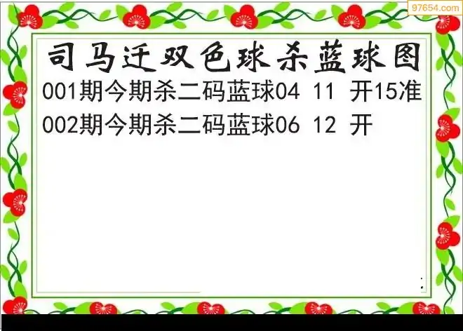 26年双色球002期司马迁杀二蓝破解图谜
