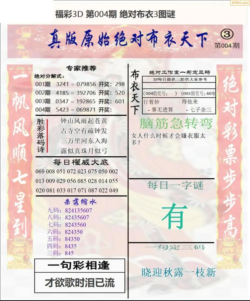 26014期丹东一句定三码(正版)_今晚3D图谜