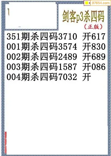 26年004期排三剑客杀码图谜