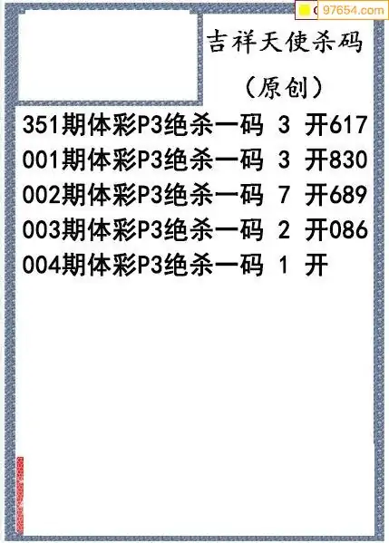 26年004期吉祥天使今日杀码图谜