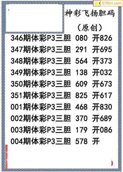 26004期神彩飞扬体彩P3三胆图谜