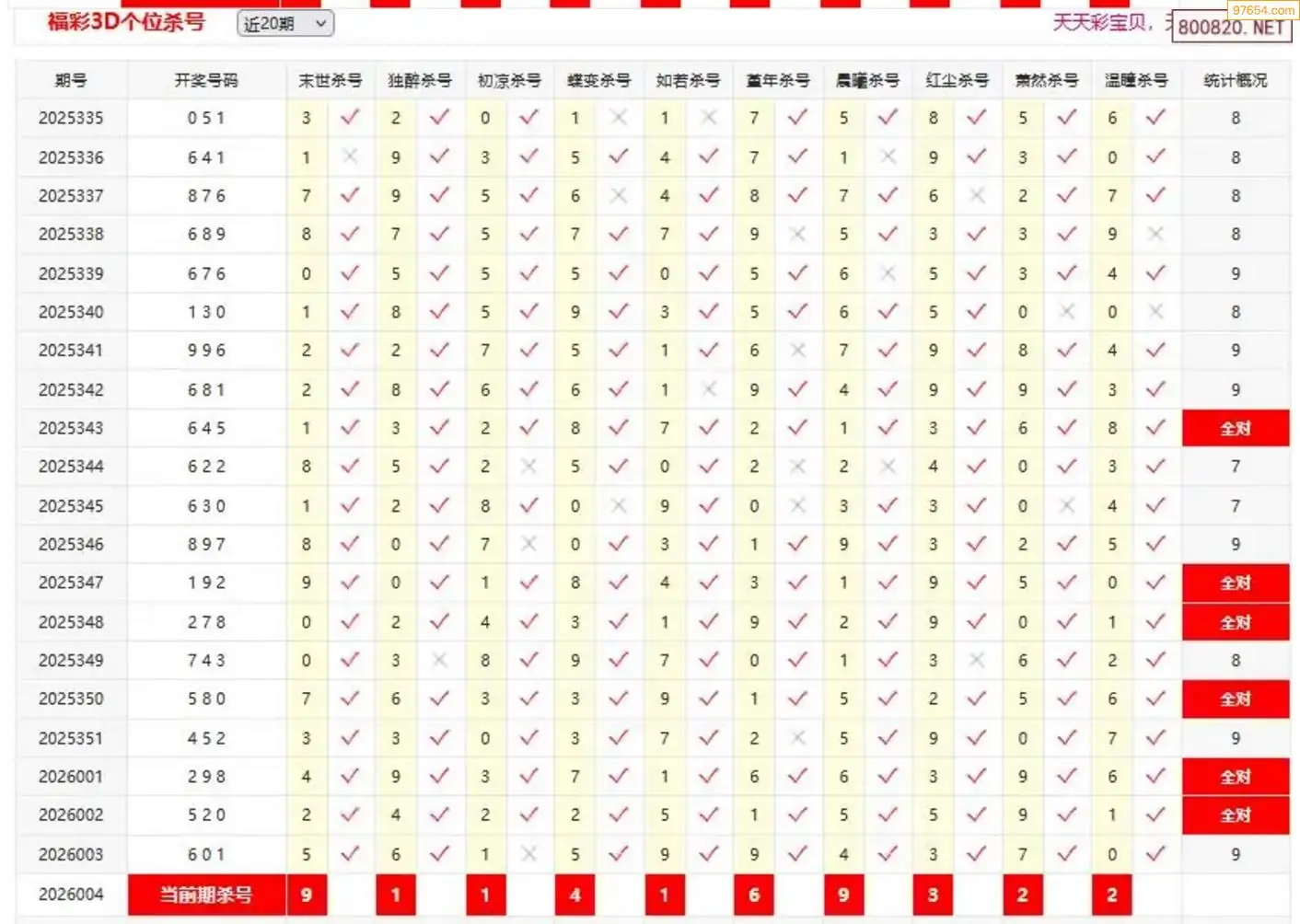 师姐26年005期3D准杀号 5连中