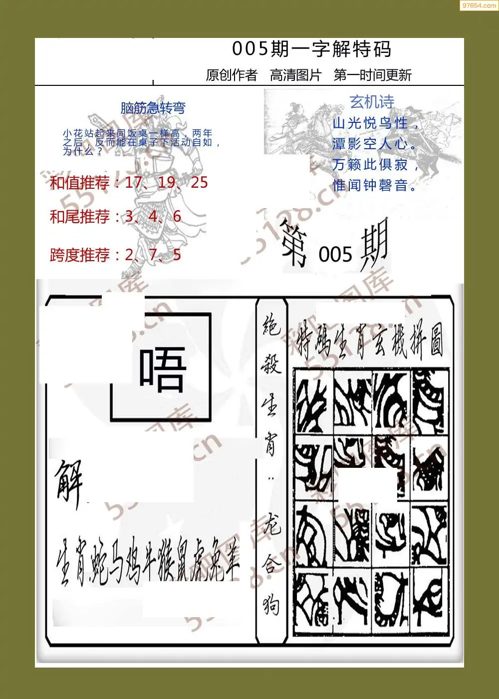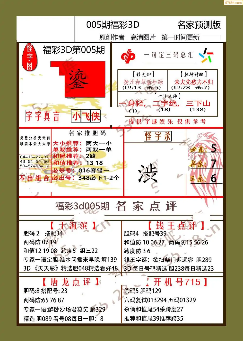 005期鑫马分析+杀手报3d图谜
