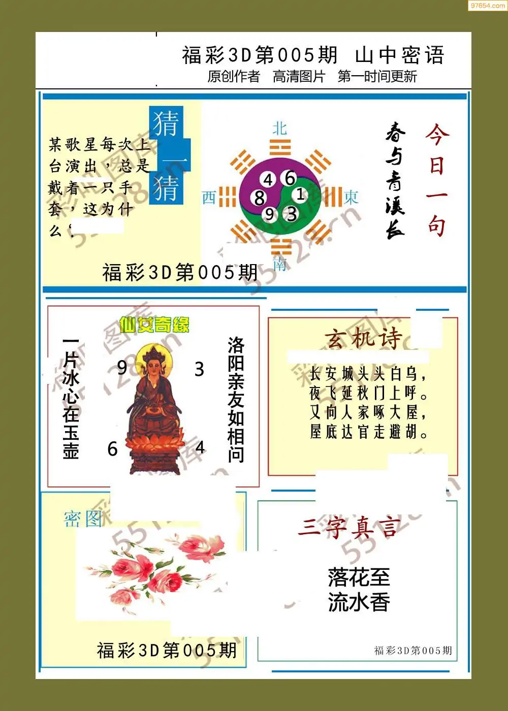 福彩3D26008期蓝仙子一句定三码图谜