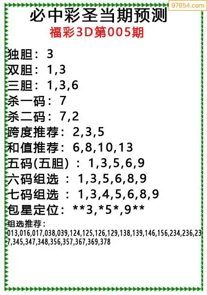 008期97654本站收集胆码出号预测