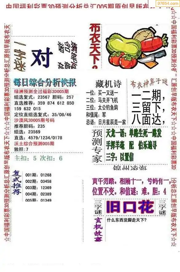 26年007期3d选号彩报图谜画谜