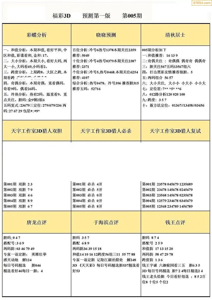 005期3D牛彩预测报+彩吧字谜报