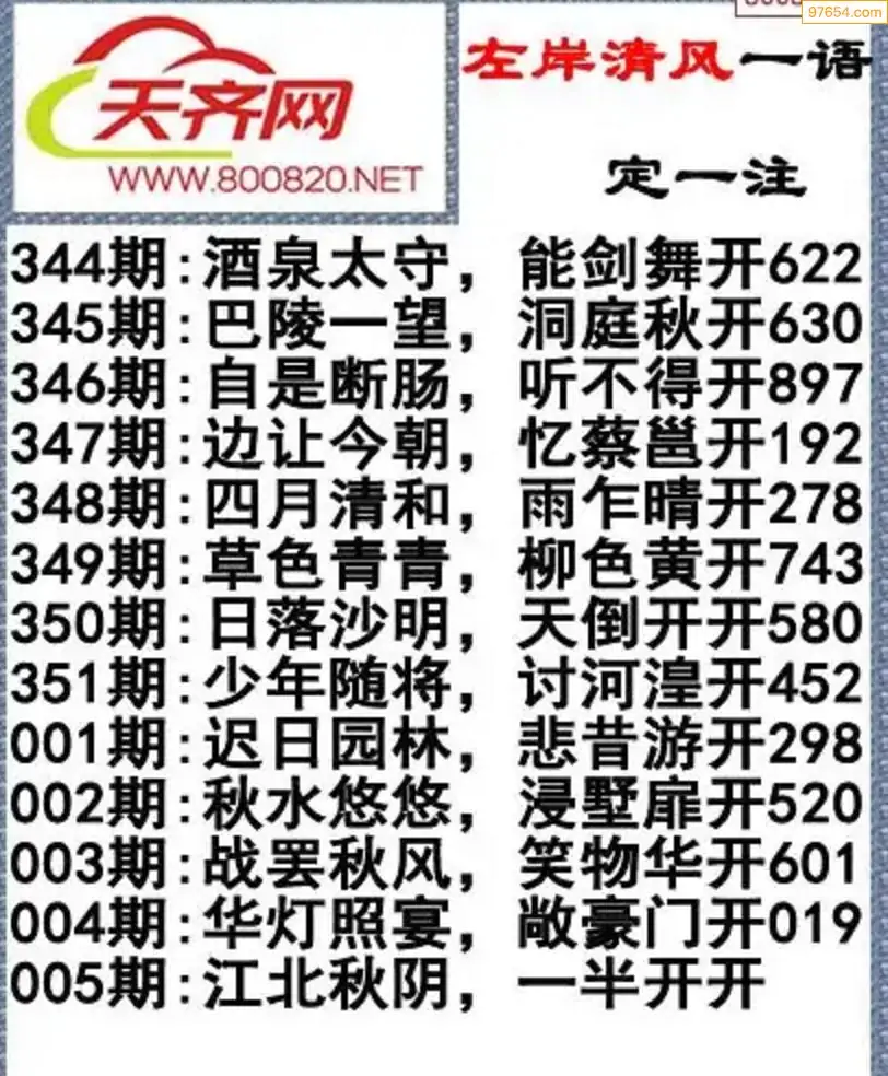 福彩3d左岸清风26年005期一语定一注