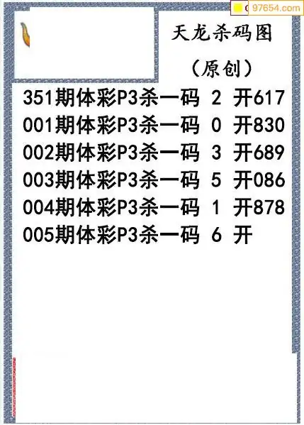 26年005期天龙体彩P3杀码图谜