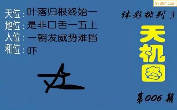 26年天吉体彩P3玄机怪字006期图迷