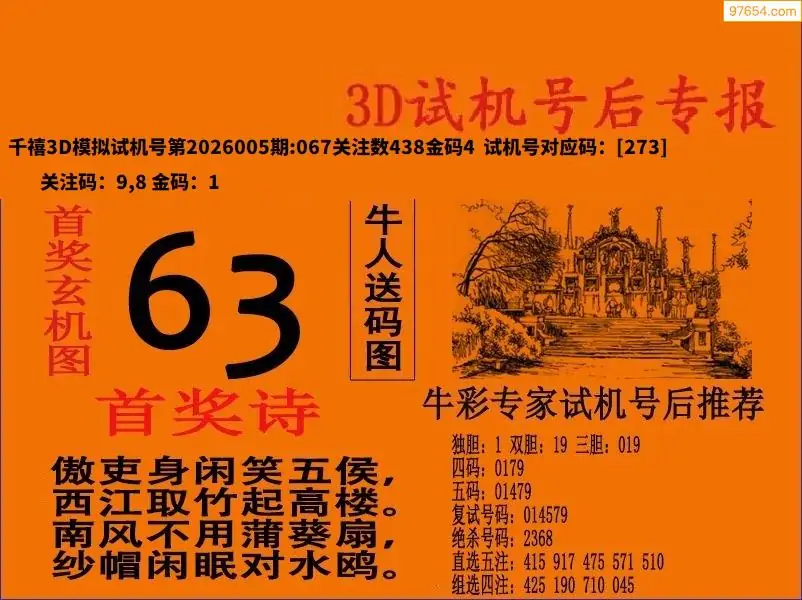 3D007期陈哲友福彩试机号后一语定胆(原创)