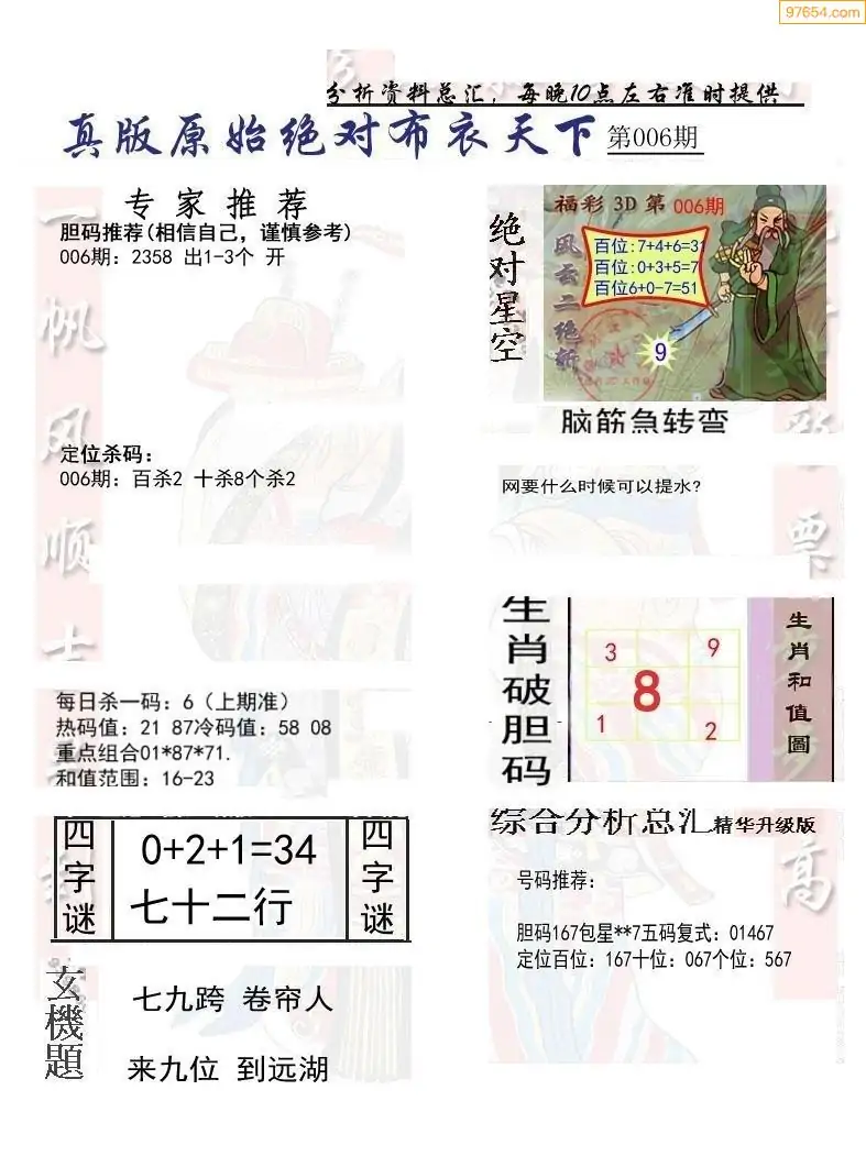 006期真版布衣神算专家推荐
