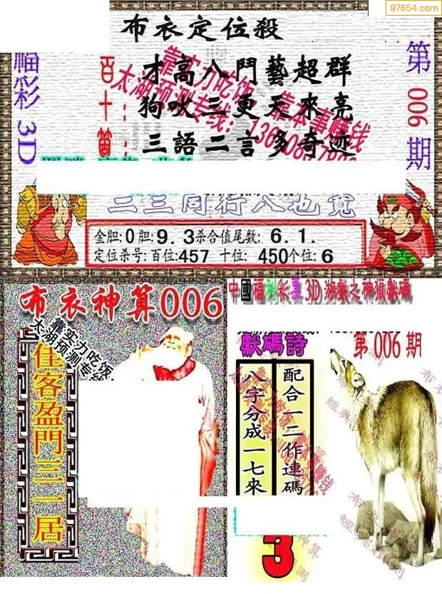 007期3D彩吧图库精华布衣图123456分享