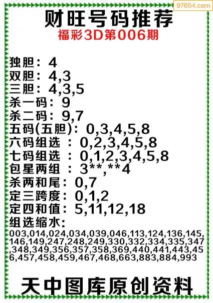 2026007期彩彩网3d原创图迷搜集(天中整理)