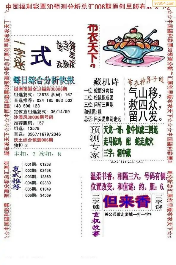 26年007期3d选号彩报图谜画谜