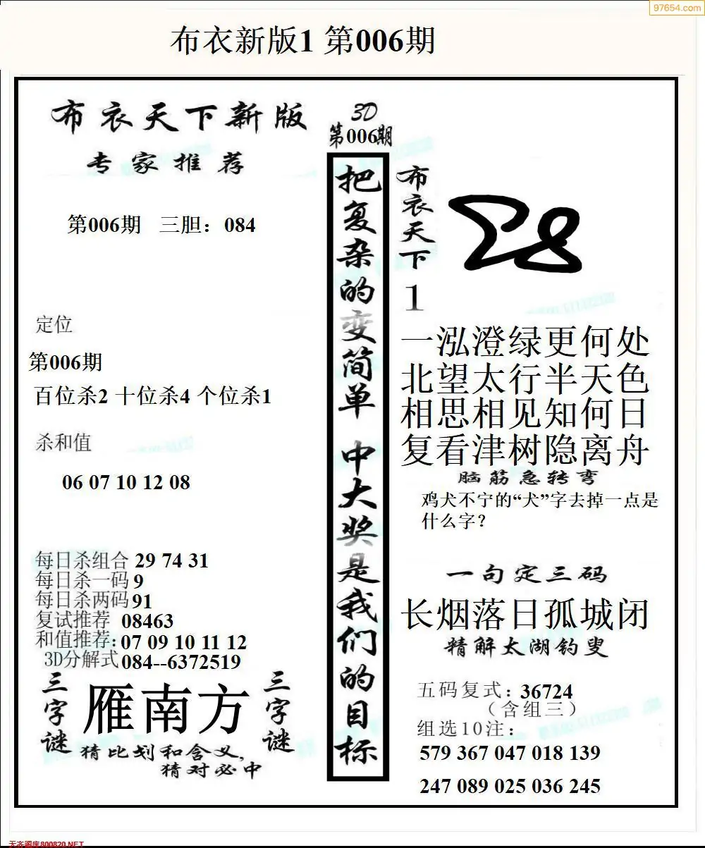 26007期早版布衣天下3D图迷