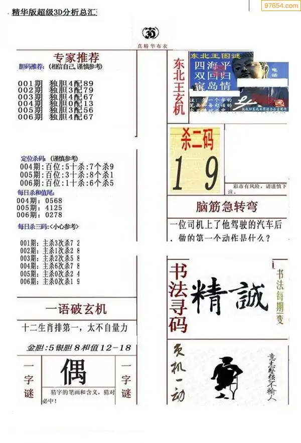 (3)2026006期3D预测总汇全图_福彩3d图谜字谜总汇