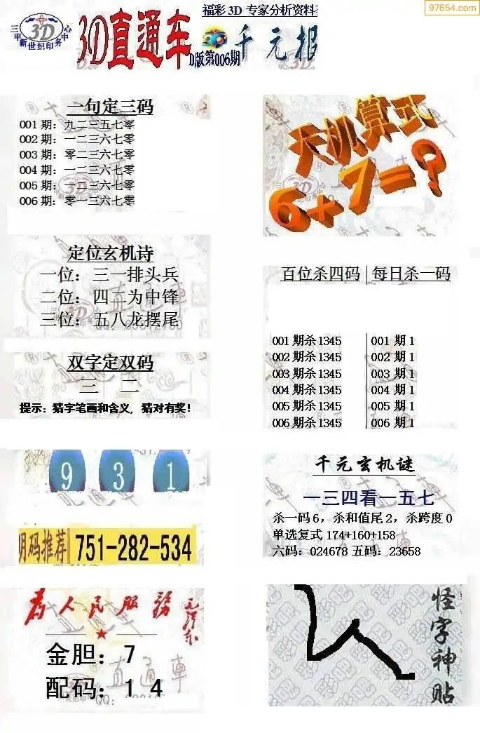 3D试机号金码