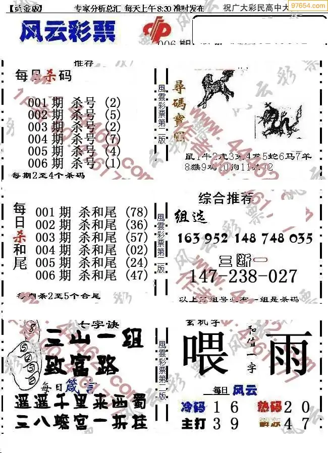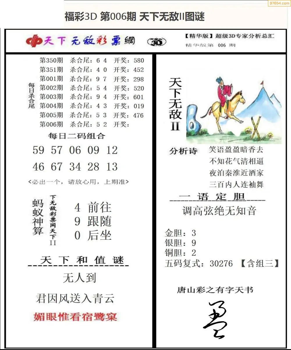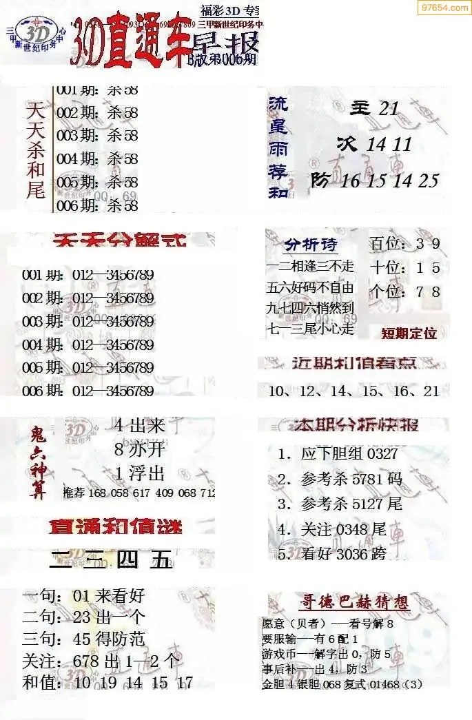 26年006期3d选号彩报图谜画谜