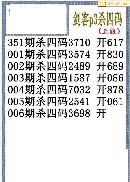 26年006期排三剑客杀码图谜