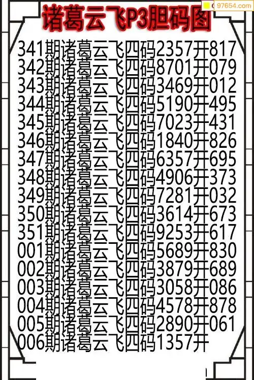 26006期诸葛云飞今期P3胆码图