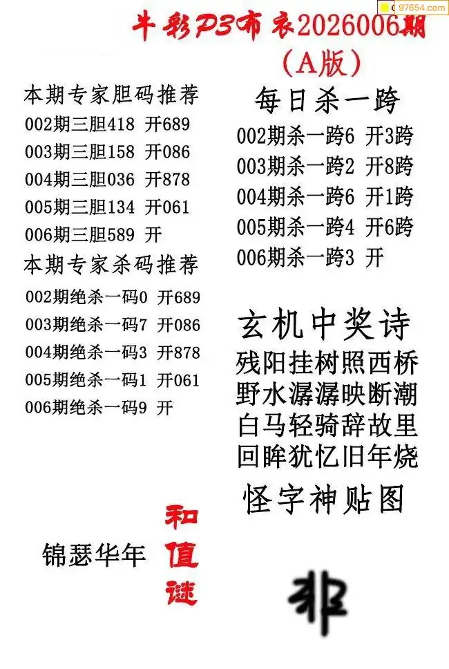 2026年007期北盟天机图+p3仙机图谜 _p3图谜汇总看点